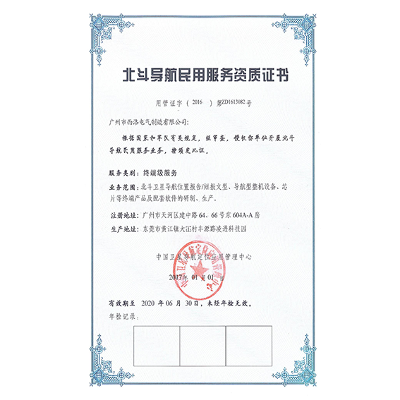 资质名称: 关于北斗民用分理服务试验资质的批复 |
