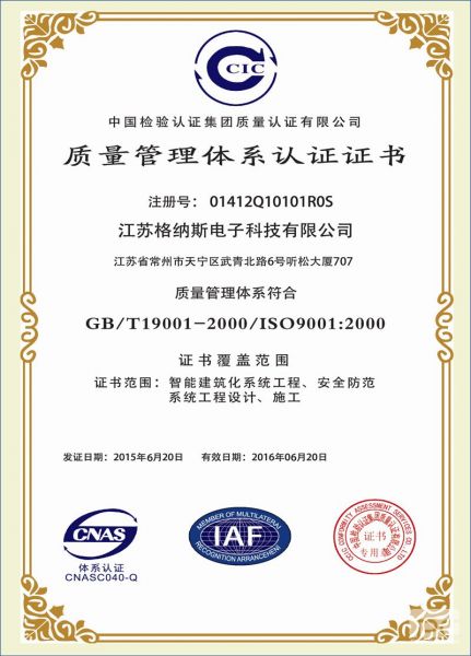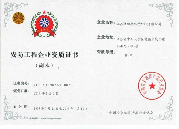 | 资质单位: 江苏格纳斯电子科技有限公司 |