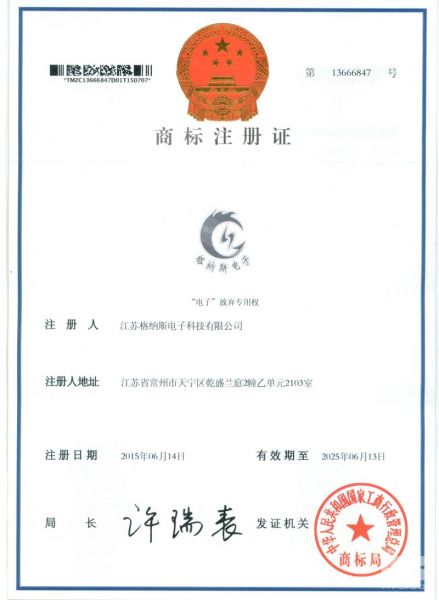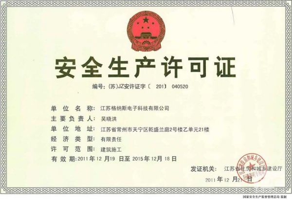 | 持证单位: 江苏格纳斯电子科技有限公司 |