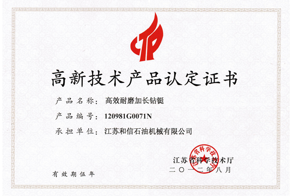 产品名称: 高新技术产品认定证书-加长钻铤 |