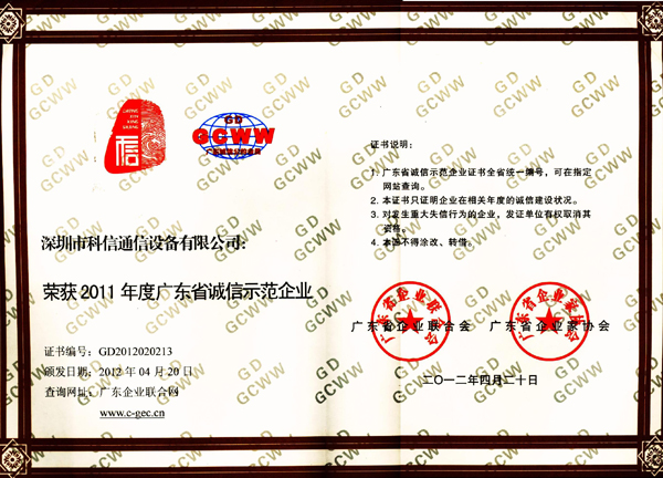 产品名称: 2011年度广东省诚信示范企业 |