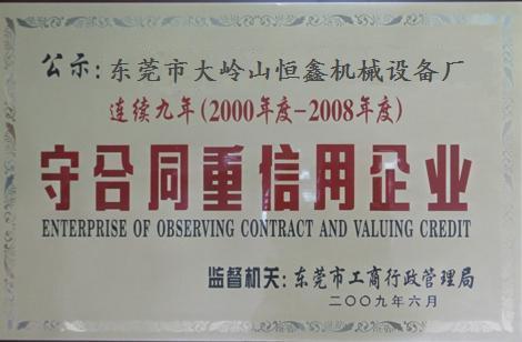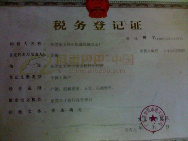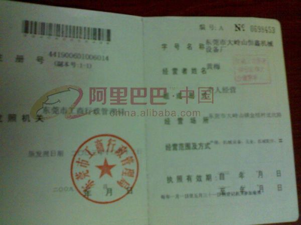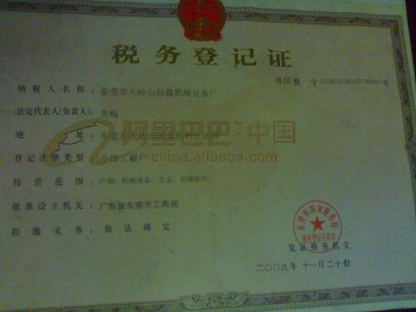 | 持证单位: 东莞市大岭山恒鑫机床设备厂 |