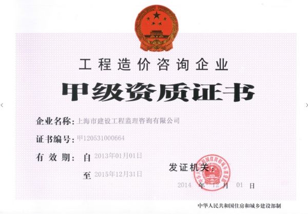 | 资质单位: 上海市建设工程监理咨询有限公司 |