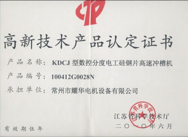 高新技术产品认定证书