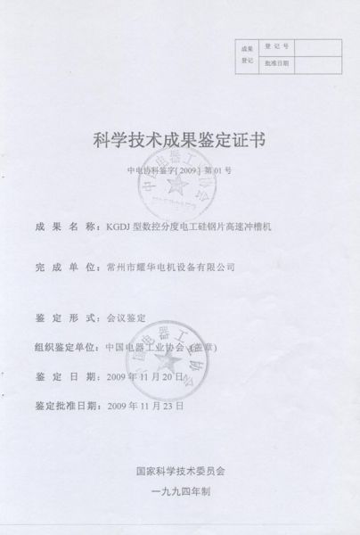 科技成果鉴定证书